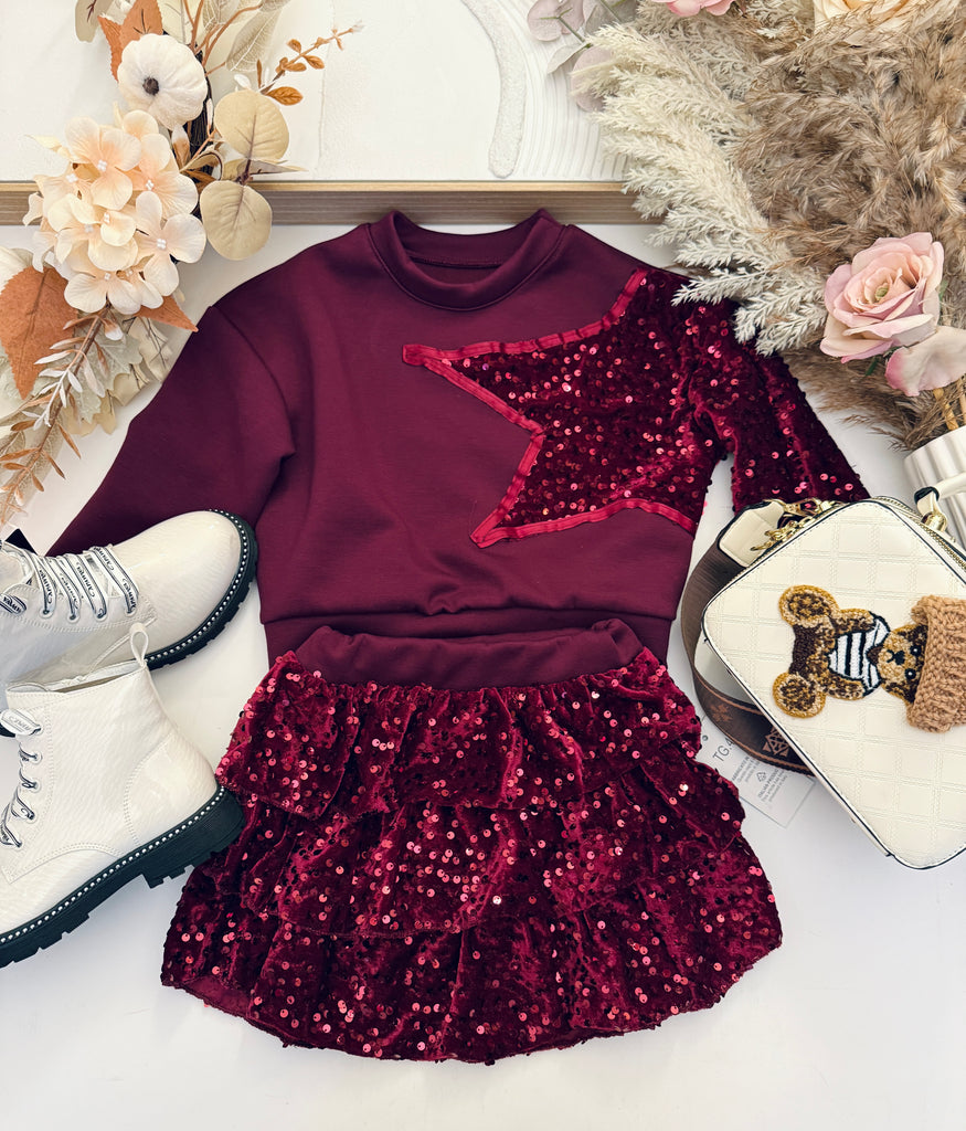 Burgundy Sequin Star Outfit