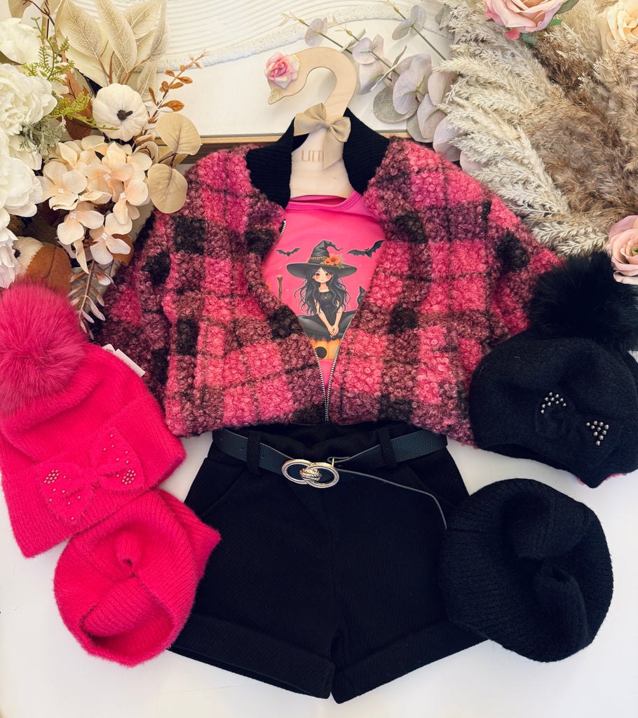 Cool cotton blend pink T shirt featuring a cute & creepy print design.