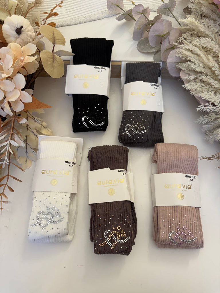 These thick cotton-blend tights come in six stunning colours, each featuring a glittering gem heart detail — the perfect mix of cosy and cute for cooler days.