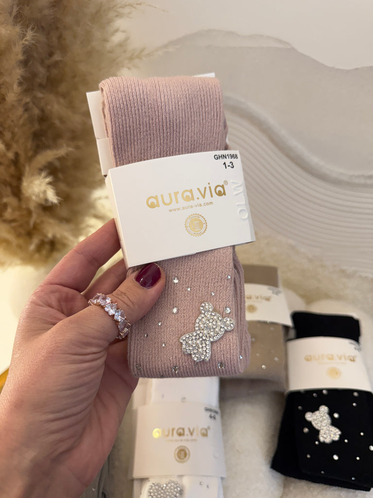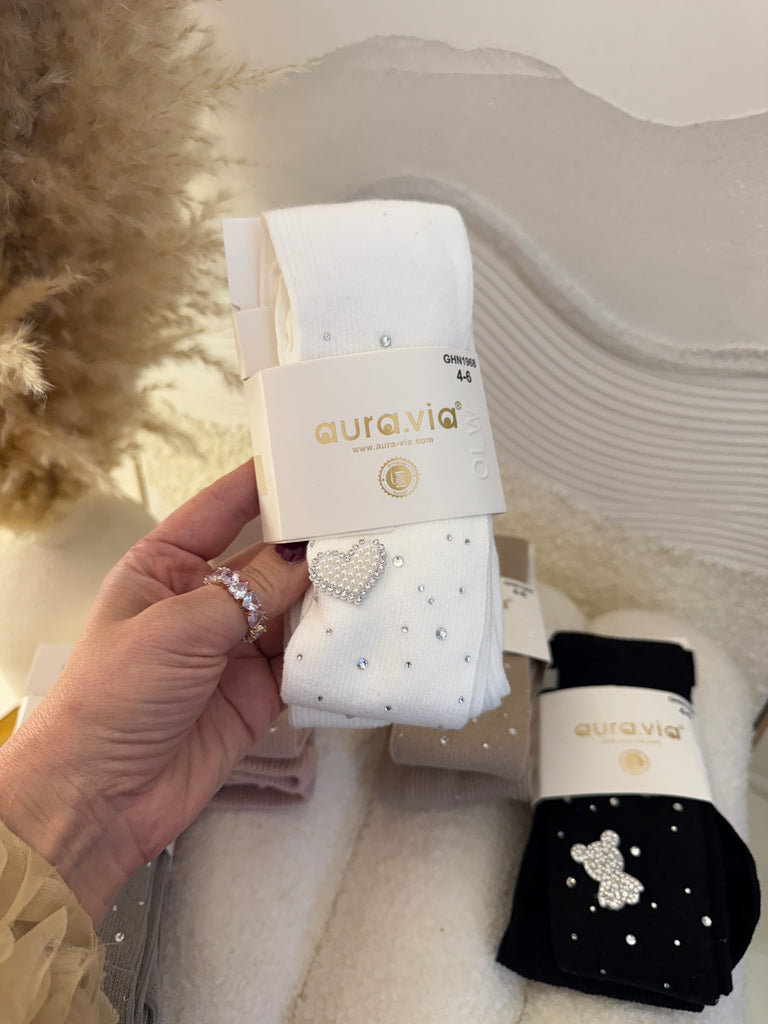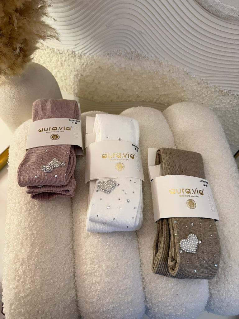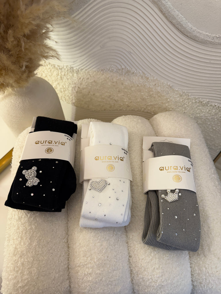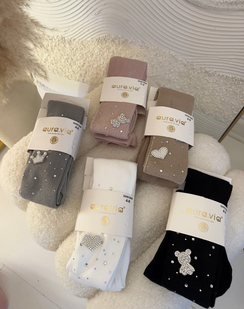 Beautiful tights embroidered with sparkling stones coming in 5 colour options.
