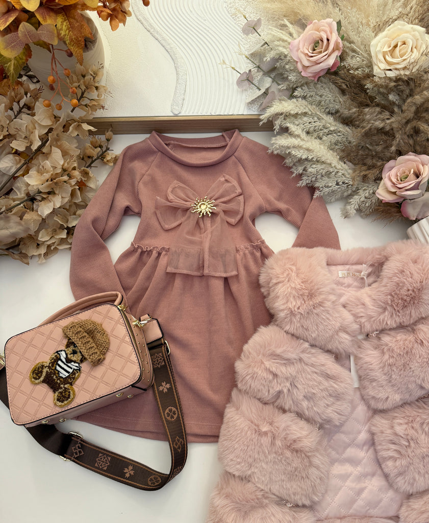Designed in a warm knit with a soft tulle bow and shiny sun charm front and centre.