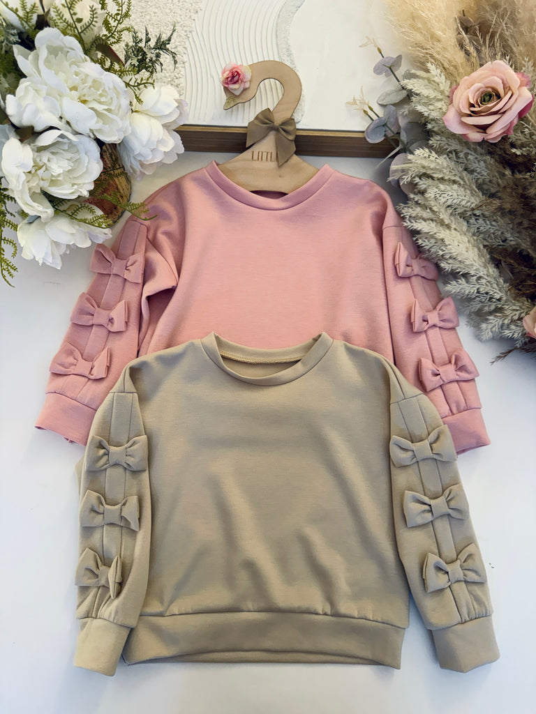 These springweight sweatshirts bring the heat with a boxy, oversized cut and triple-stacked bow detailing down the sleeves.